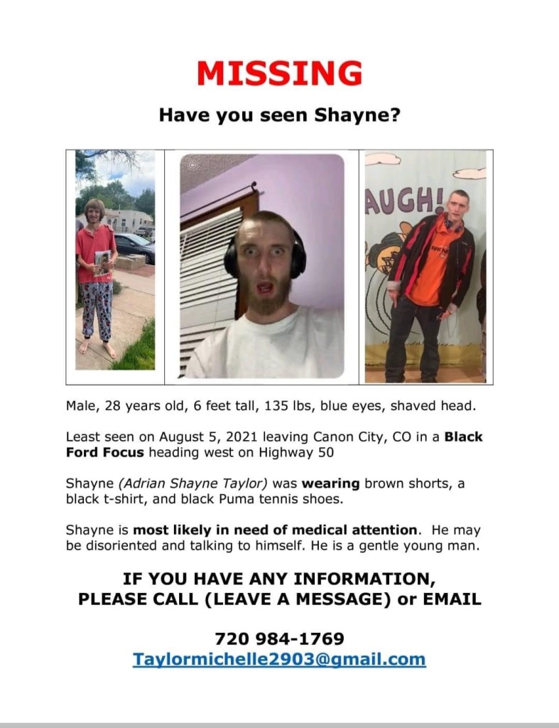 I was hesitant to put a flyer up; historically, they haven’t been all that helpful. Everyone in the world starts reporting sightings. And in this case, I was also afraid that the flyer would make my terror that something had happened to him more real. I could barely look at the pictures of him on my phone, let alone come up with the words to put on the page. I had my own little sensory overload. A friend helped me out though and after a conversation with the police, I realized that if I was going to find my son, I needed my village. It’s not that police are uncooperative; they took down the information that my son was missing. But they weren’t looking for him. He is twenty-eight and left home of his freewill and I’m being overreactive. They didn’t fully appreciate how acutely ill my son is.