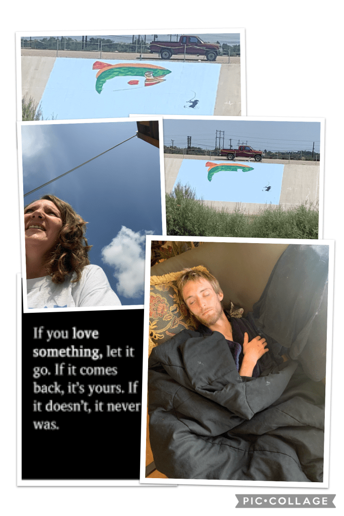 When I was a kid, I spent a lot of nights with my cousin, Jackie. She had this poster in her room that read–“If you love something, let it go. If it comes back, it’s yours. If it doesn’t, it never was.” I kept thinking about that, even though I posted a flyer and called the sheriff when my brother thought he found a cell phone signal. I went out to the levee and painted and started emotionally preparing myself to say goodbye to my son.