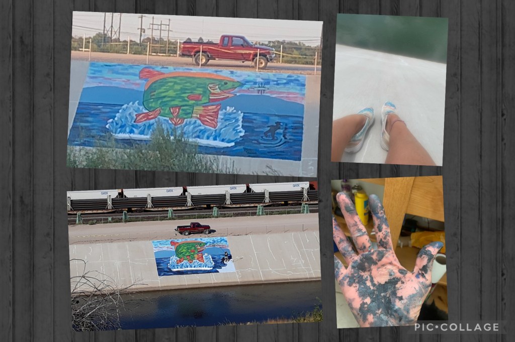 I feel like when I am finished there should be a party. When I used to set paint, I was always invited to the cast party. I have thought about a picnic at the kayak park, or maybe dinner at Bingo Burger or at Angelo’s. Everyone who has supported me and anyone who wants to see the mural could come. But that seems sort of dumb, because it’s not like the mural is going anywhere. Anyone at all can go see it whenever. I could do a private celebration. Hop on my bike at the reservoir and stop for a snack by the mural and then buy myself some shoes or new jeans or something. This feels like a huge accomplishment for me. I’ve learned so much and grown so much in the process and I want to celebrate with all my friends and family and community that has supported me. So party at the river?