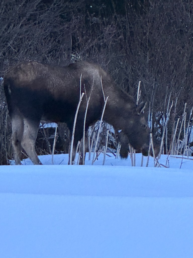 I will never forget standing next to the eagle. I was walking back to the car in the fading light thinking about how completely lucky and humbled to be able to experience that kind of magic and I joked that if I saw a moose on the way home, nothing could be more perfect. And then this happened.