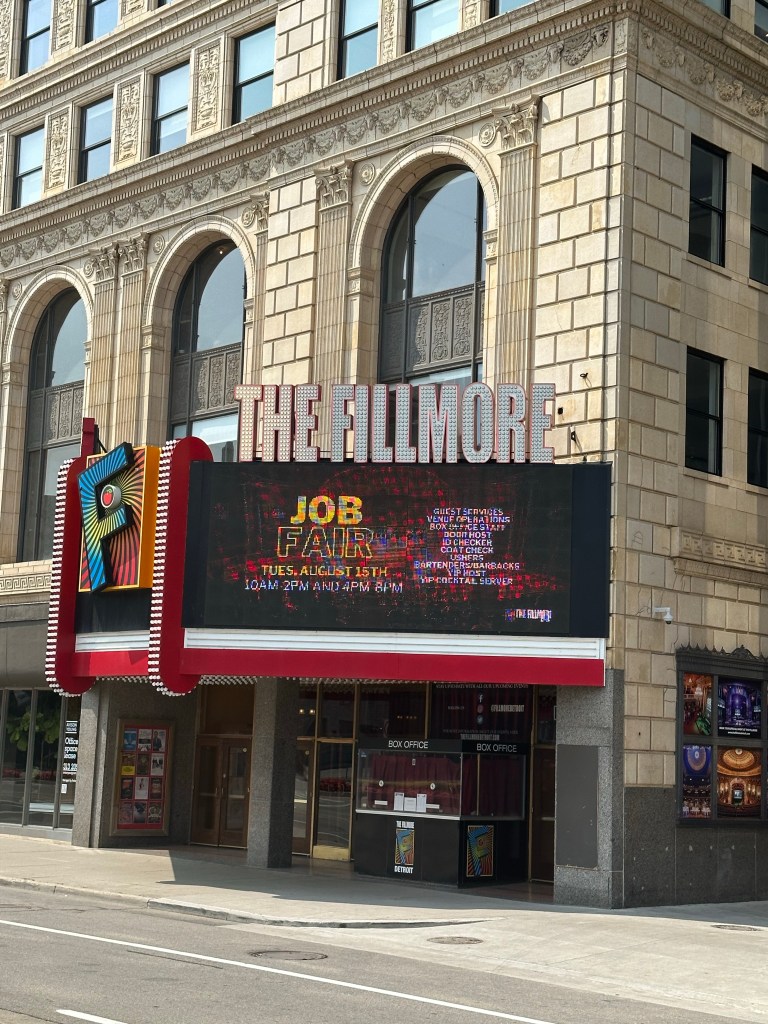 The restaurant was in the theater district, which I guess has the second most theater seats in the United Staes. The Fox. The Fillmore. The Gem. These buildings were built when money was flowing. There is marble and brickwork that is unbelievable. The word that came to mind was opulent. I felt like I was on a scene of a movie. A dystopian flick. The war is over. The city didn’t burn, but most of the people did. The survivors are still emerging from the shadows to see what can be salvaged.