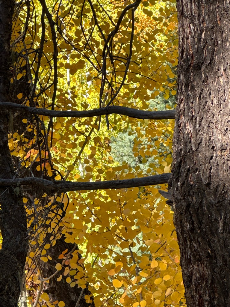 I took it all in and just enjoyed what the day had to offer. I met a couple from Lynchburg, Virginia on a year long tour of America. I met a tarantula on a mad dash away from me. The temperature was perfect and the golden leaves magical. I met my cousins and we had a great evening in a place that over looked a lake with some soaking in the springs and a scrumptious dinner. I love the women in my family. They inspire me with their strength. I wish Darian had stayed, but she has to make her own path.