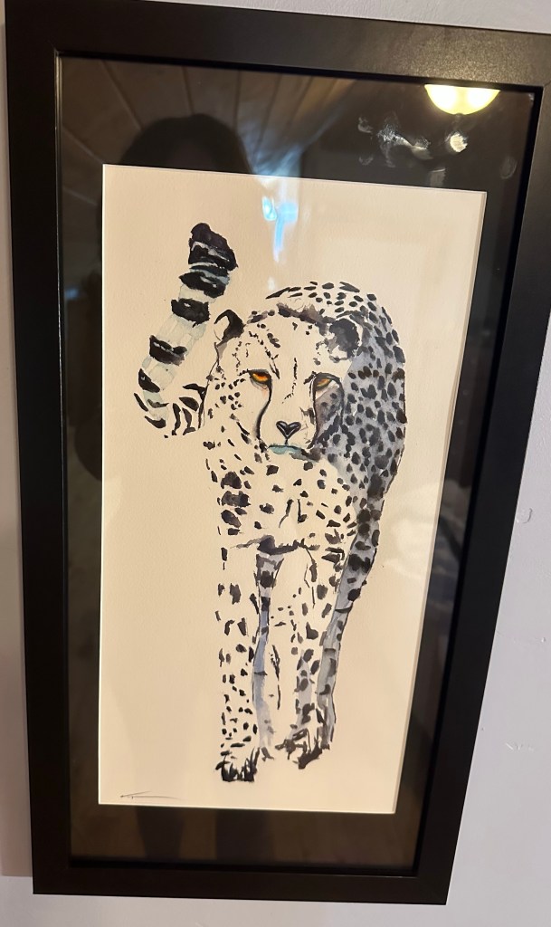 I bought one of the fairies and gave it to a friend. All of a sudden, I remembered giving gifts is about love and respect and gratitude for the those who travel along on our journeys and help light our paths. Sometimes gifts can be for others to help light their paths. I also bought the cheetah. I hung the painting in my bedroom. It is the first thing I see in the morning and the last, before turning out the lights, at night. She (the cheetah is a girl) reminds me that I have work to do and inspires me to keep trying.