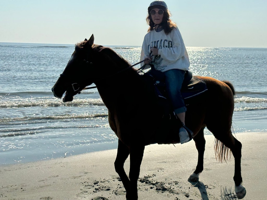 I got my horse ride on the beach. Trigger was a fifteen year old quarter horse who has been a trail rider on the beach for a year. He came from somewhere else where he also rode trails. He was impatient to start the ride and when we got on the sand he wanted to jog. I wanted to run. We both had to settle for a quick walking pace. I couldn’t stop staring at the horizon line, taking in all that sky, sand, and water. Add that to the power of the animal underneath me, and the realization that I was doing something I have always wanted to do gave me an extreme boost of happiness.