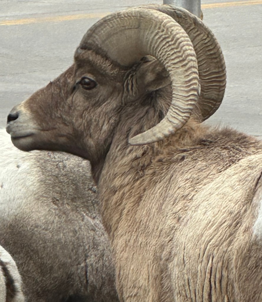 Laundromats and I are not friends. The craziest things always happen to me in them. This was no exception. The lights didn’t work, so the shop was dark. The soap dispenser ate my quarters. There was one other customer and he gave me a scoop of his Tide which I accidentally dumped into the softener dispenser and then transferred it into the right place with my hand. When I started the washing machine, it was so loud that I thought it was breaking, and when the spin cycle came on, I honestly thought the machine was going to explode. I put the clothes in a dryer and it didn’t work, I tried four before I found one that actually spun, but after forty minutes my clothes were still wringing wet, but my rental car has heated seats, so I just spread my jeans out in the car and drove around Deadwood a bit. That’s when a herd of Big Horn Sheep crossed my path.