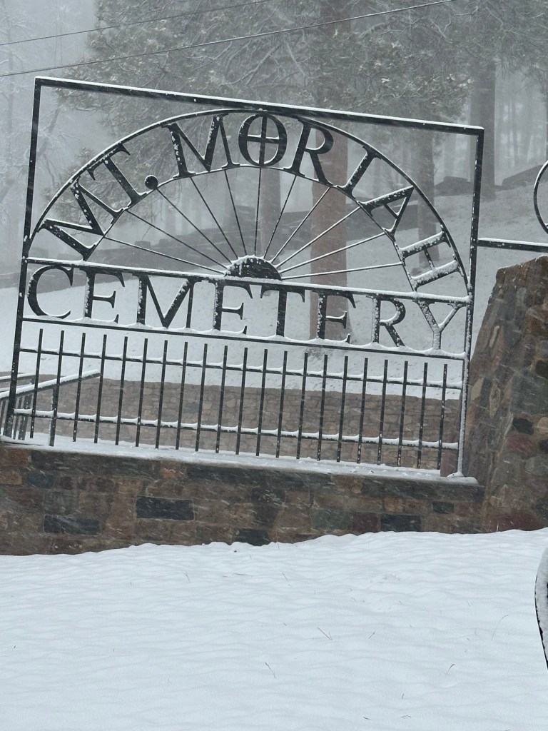 I still had time to kill, so I decided to go check out Calamity Jane’s gravesite. The map said it was less than a mile, but I decided to drive because of the snow. In the time that I left Sally’s and drove up to the grave, the snow was a blizzard. The cemetery was closed and I wasn’t sure I was going to be able to drive down the hill. I know I have grown up in snow, but I have never seen so much snow so fast. I only had five miles to drive, but it took forty minutes to get there and it was terrifying to drive in blinding snow and trust that GPS knew the way.