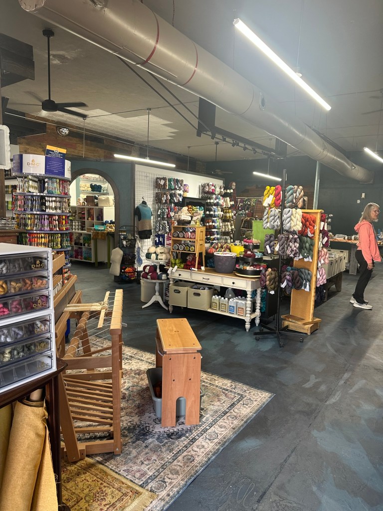 Yarned & Dangerous is not just a store; it’s a live colorful, warm, inviting community. You are greeted when you walk in the door and welcomed into experiencing the space. There is a big table where people gather to knit, crochet, weave, or just sit a moment and take in the vibe.